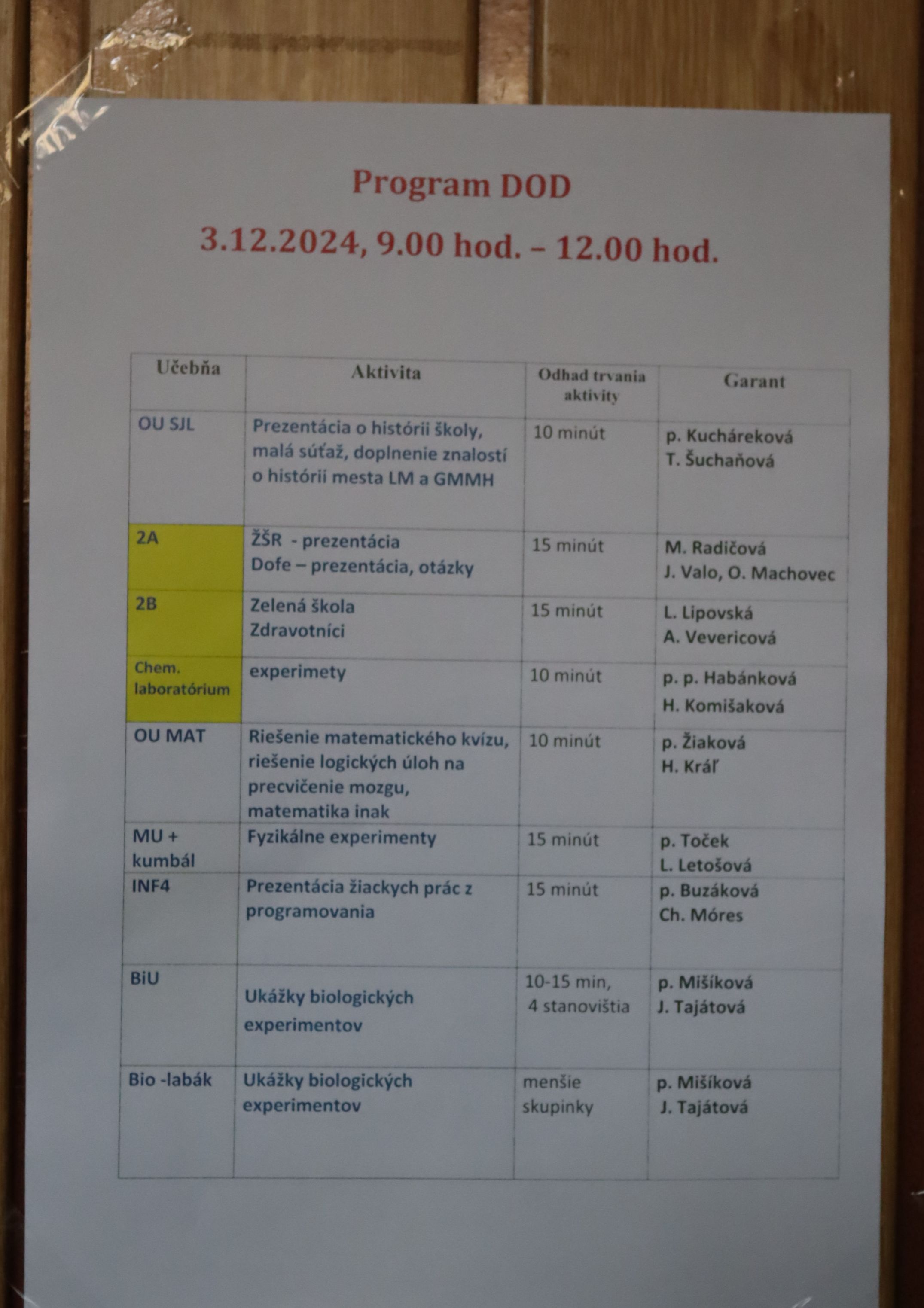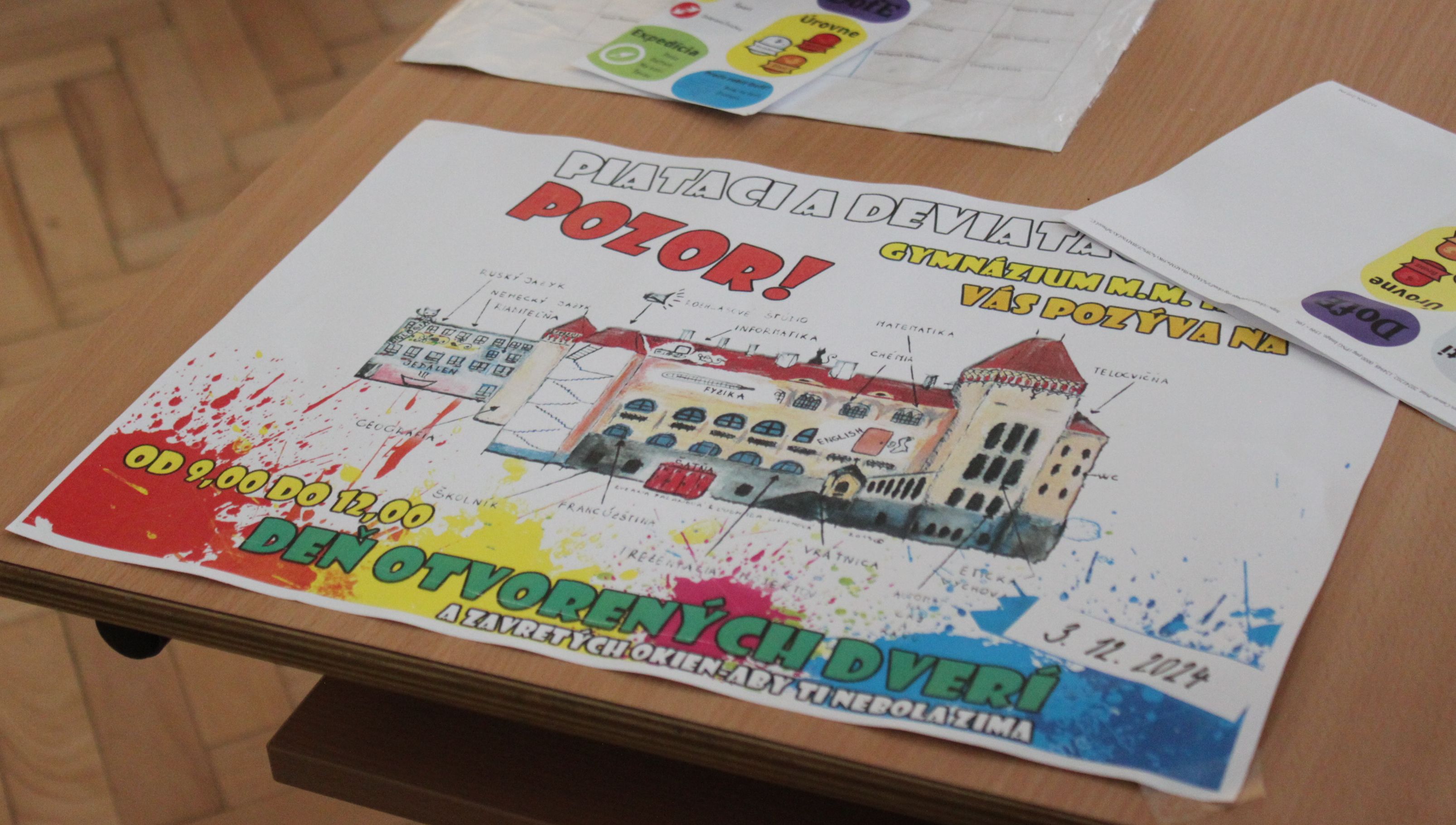 V utorok 3. decembra 2024 sme otvorili dvere nášho gymnázia pre všetkých, ktorí majú záujem u nás v budúcnosti študovať. Študenti a učitelia pripravili pre návštevníkov množstvo zaujímavých aktivít, priblížili im život na našom gymnáziu a zodpovedali rôzne otázky.